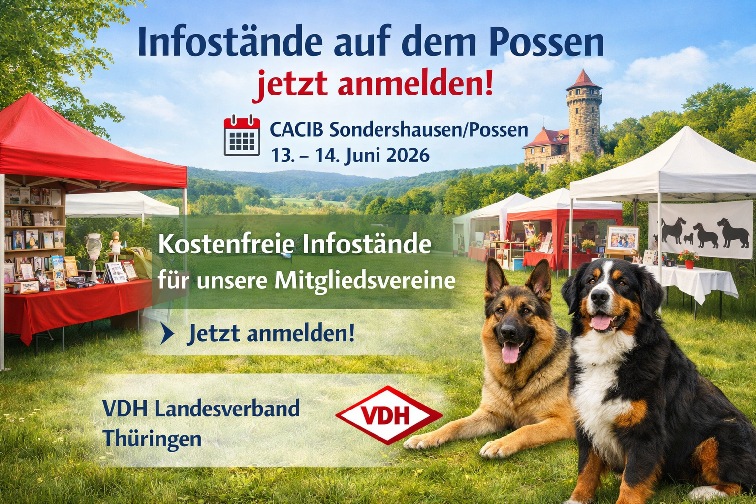 Zur CACIB Sondershausen/Possen (13.–14.06.2026) können alle Mitgliedsvereine kostenfrei einen Infostand aufstellen.