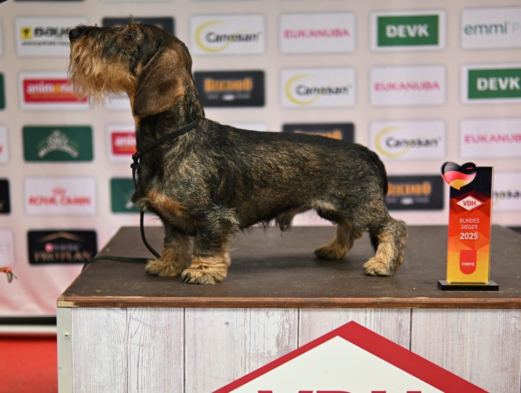 Weil hier ja lange kein Teckelbild mehr gepostet wurde 😏. Wir züchten zwar nicht in Thüringen, gehören aber zum Team VDH-Thüringen, mein Rauhaarteckel Eulenspiegel vom Lohheidesee konnte sich unter dem strengen, aber fairen Richterurteil von Vladimir Piskay, toll geführt von Gabriela Siedlecki, den Bundessieger-Titel und das BOB erlaufen.