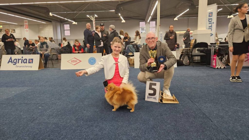 Zwergspitz Qwixi und ihre neu kennengelernte, 11 Jahre alte Freudin Sophie sind beim Juniorhandling-Wettbewerb am Samstag auf den 5. Platz und am Sonntag im Finale der besten Deutschen Junior Handler auf den zweiten Platz gekommen! Besonders wenn man bedenkt, dass sie sich erst am Samstag persönlich kennengelernt, haben sie an diesem Wochenende eine Glanzleistung hingelegt!“